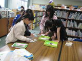 1年生と2、3年生が、学校司書さんから図書室の使い方のオリエンテーションを受けました。
