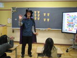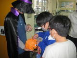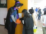 ランチタイムでも、同様のスタイルで全校児童に、ハロウィンについての話をしてくれました。実に板についたハロウィンのコスチュームぶりから、本物のハロウィンの気配を感じることができました。流ちょうな英語での説明が、全部理解できるわけではないのですが、先生の表情と笑顔、そして大きなアクションの身振り手振りから、不思議とみんなに内容が伝わってきたような気がしました!すてきなコミュニケーションに触れることができた一日でした!