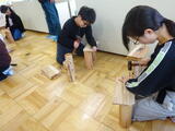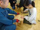 木工体験 木のイスづくり (5年生) 投稿: 釜ヶ渕01 (12/11) 立山山麓森林組合の方々に来ていただき、木工体験を行いました。始めに、森林が私たちの生活と密接に関わっていることや、地球温暖化を防ぐ働きがあるということを学びました。次に、丸太と木の板とねじを使って、イスをつくりました。長い釘がだんだん曲がったり、板が割れたりと難しさを感じつつも、自分たちの手で自分のイスをつくることができた喜びを感じる5年生でした。大切に使わせていただきます。 Tweet -