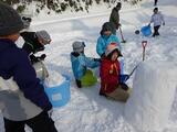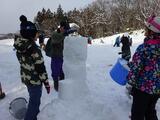 天候は薄曇りで、新雪が1m弱積もっているという、絶好の活動日和でした。活動を応援してくれているように、あたたかな日差しも雲間から差し込んできました。班ごとに考えてきたアイディアに沿って雪像づくりを始めました。実際に活動を始めると、思いがどんどん広がっていって、当初描いていたものから変わっていきましたが、それもまた良しです。